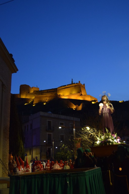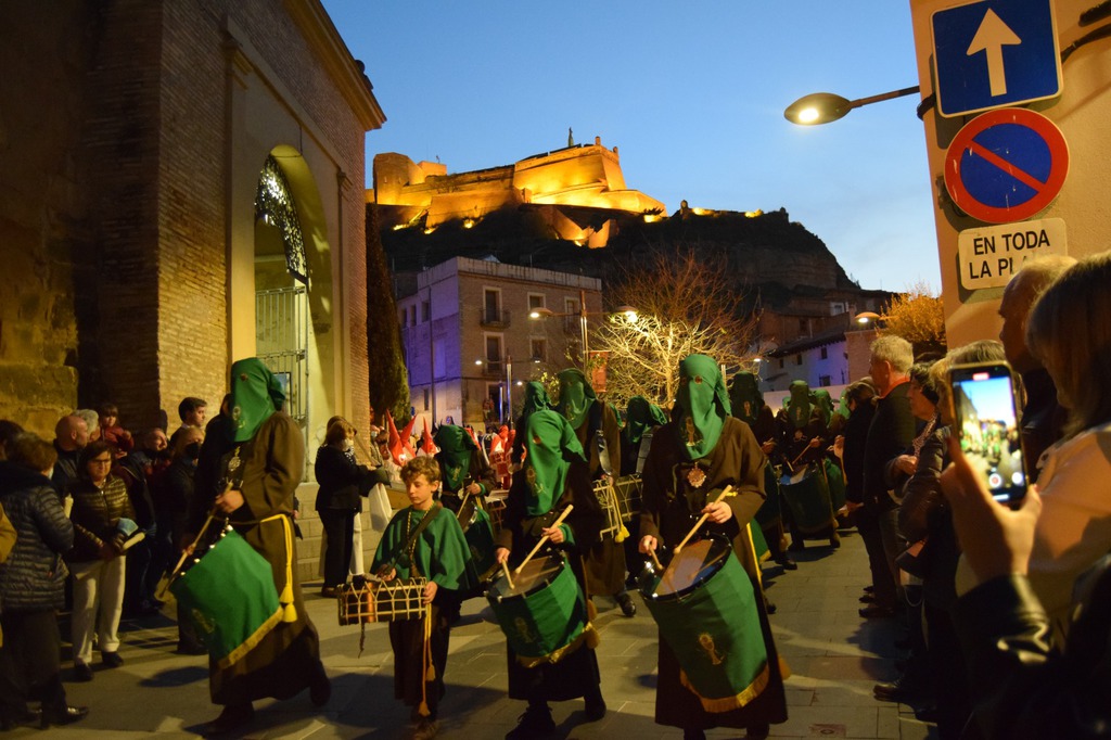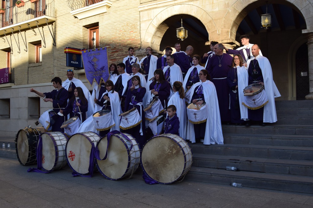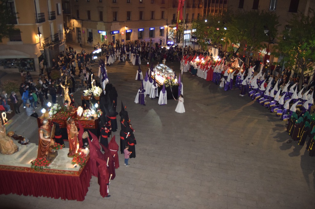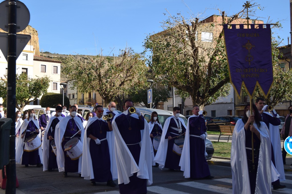 Salgamos a la calle para contagiar, para animar, para transmitir, para transformar, como en la tarde del Viernes Santo, recorriendo las calles de Monzón bajo la atenta mirada del imponente castillo templario, mirando al Crucificado, “Cristo de la Buena Muerte”; mostrando a través de los pasos una “Historia” que parece que termina en el Sepulcro donde advertimos la figura de Cristo yacente, al que veneramos en su entrada a la Plaza Mayor arropado por el morado y blanco de la Cofradía del Santo Sepulcro, pero que nos deja una puerta abierta a la esperanza.