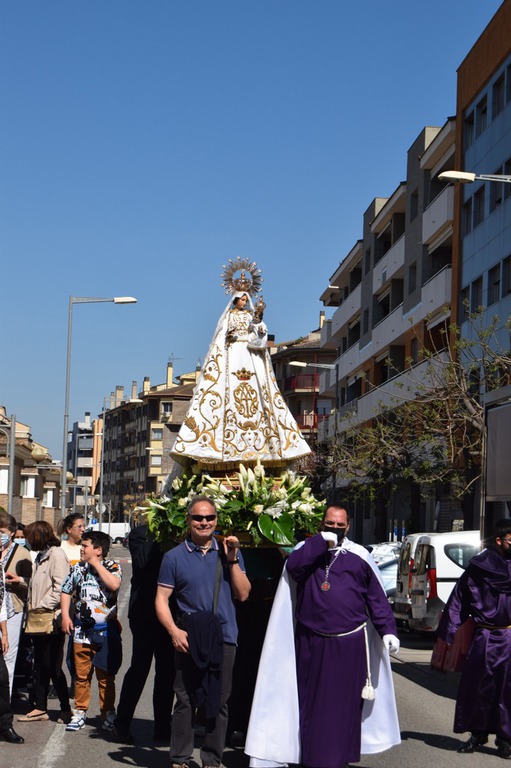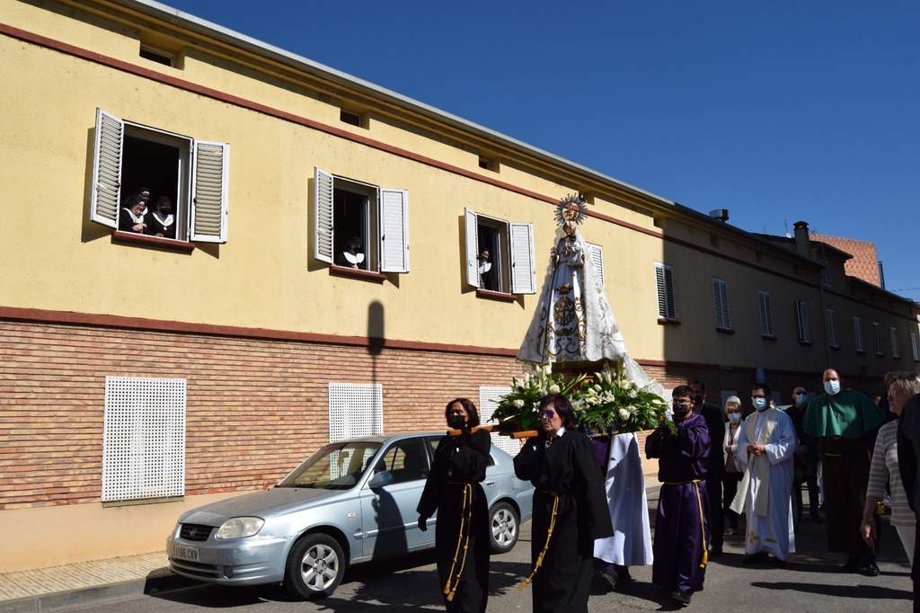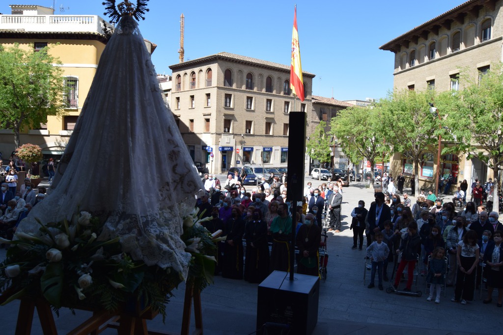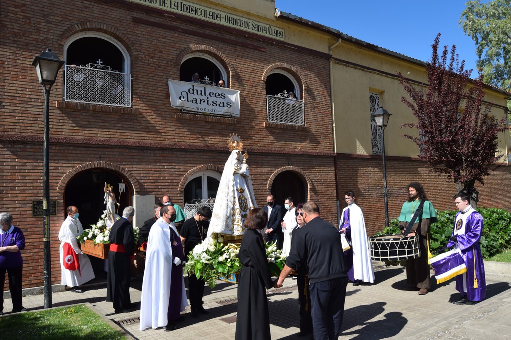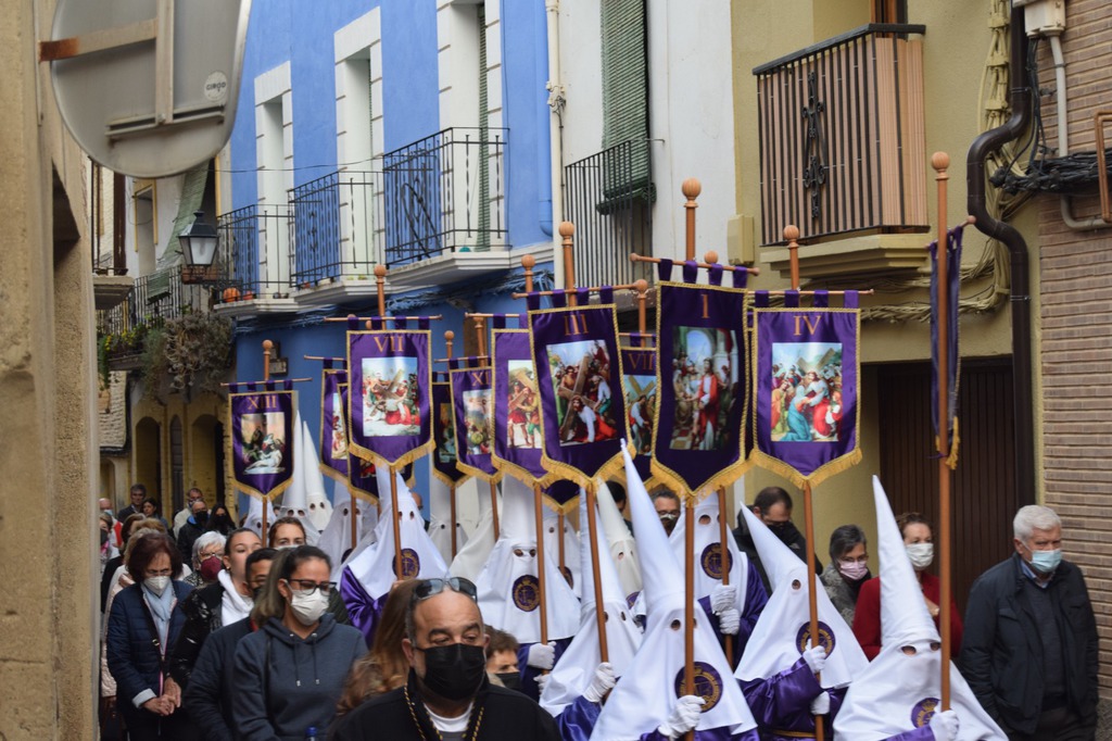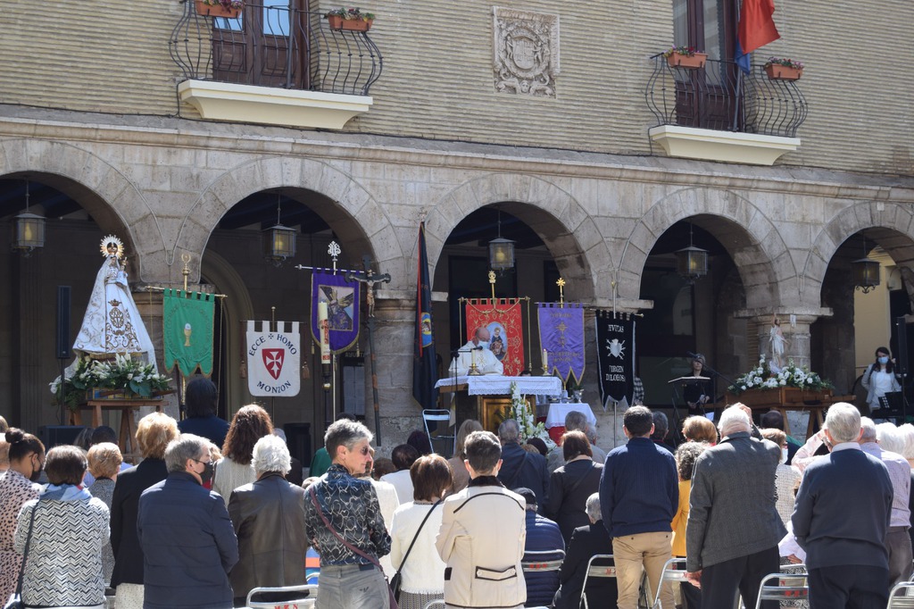 Salgamos a la calle para contagiar, para animar, para transmitir, para transformar, como en la tarde del Viernes Santo, recorriendo las calles de Monzón bajo la atenta mirada del imponente castillo templario, mirando al Crucificado, “Cristo de la Buena Muerte”; mostrando a través de los pasos una “Historia” que parece que termina en el Sepulcro donde advertimos la figura de Cristo yacente, al que veneramos en su entrada a la Plaza Mayor arropado por el morado y blanco de la Cofradía del Santo Sepulcro, pero que nos deja una puerta abierta a la esperanza.