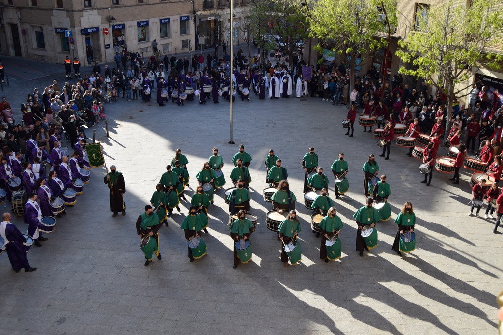 Salgamos a la calle para compartir con quien necesita un gesto de cariño, con los ancianos que agradecen una palabra, con los jóvenes que buscan su futuro; que pueden ser también nuestros padres, nuestros hijos, nuestros abuelos, o incluso nosotros mismos; como compartimos los recuerdos, el sonido de los tambores, el colorido de las túnicas, las amistades personales, en la “Tamborrada” del sábado en la Plaza Mayor, o en la “Rompida” del Jueves Santo, en la que resuenan emociones y sentimientos al inicio de la media noche iluminada con la luz de las velas.