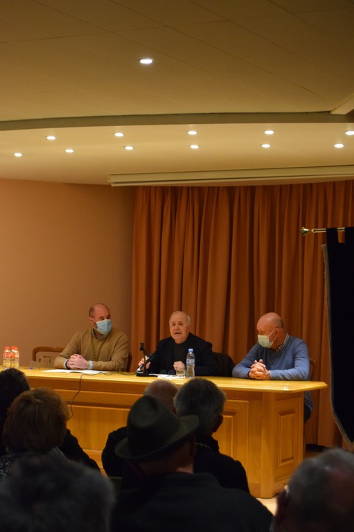 Esta tarde del 12 de marzo, se ha pronunciado el Pregón de Semana Santa a cargo de don Jesús Gracia en la concatedral de Santa María del Romeral, acompañado de Juan Acedo, presidente de la Junta Coordinadora de Cofradías de Monzón y de Salvador Sarrado, vicepresidente de la misma. Con los estandartes de todas las Cofradías montisonenses y sus presidentes, y el salón de actos con numeroso público, se han iniciado oficialmente los actos previstos para celebrar la Semana Santa del 2016 en nuestra ciudad. Entre los asistentes se encontraban miembros de cofradías barbastrenses, así como nuestro obispo don Angel Pérez Pueyo, que ha pronunciado unas palabras para finalizar el acto.