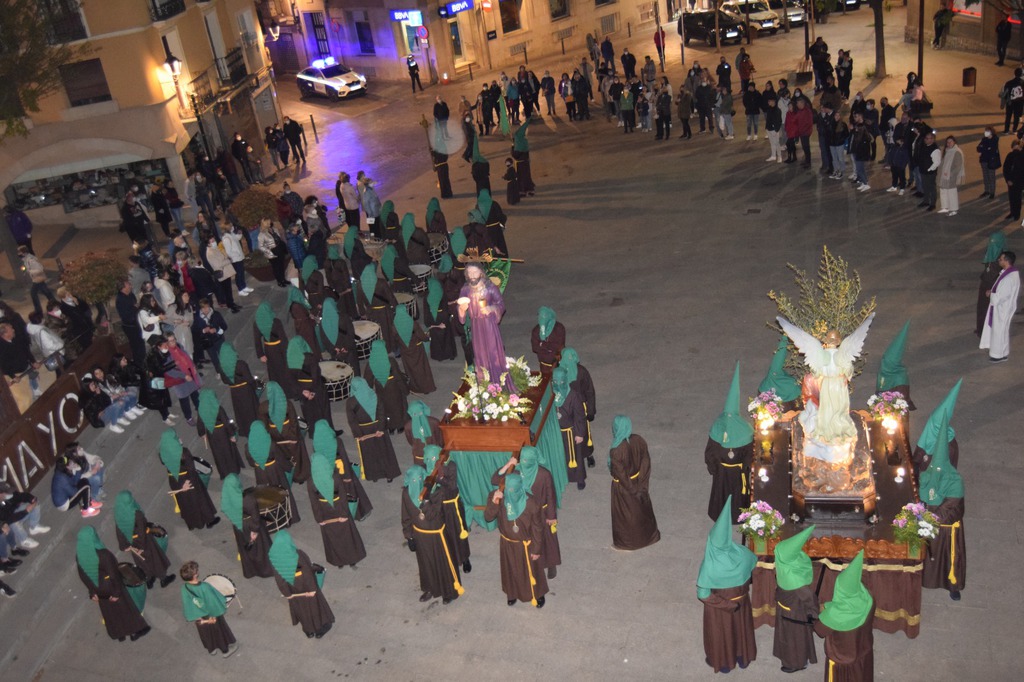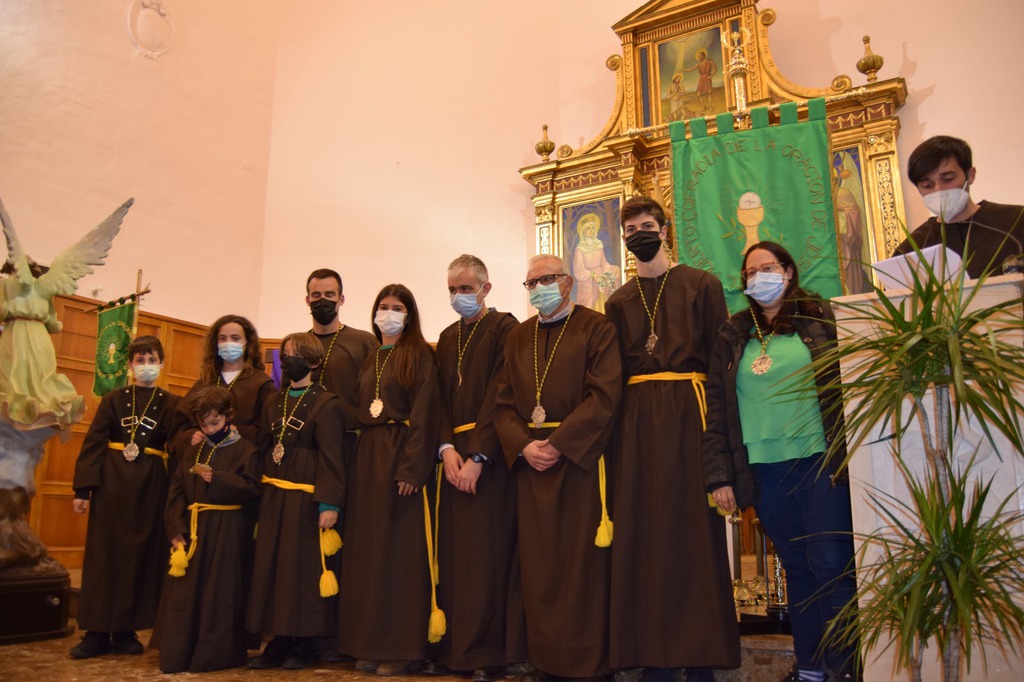 Salgamos a la calle con la mano tendida para estrecharla con el que nos tiende la suya, con la anciana que espera a cruzar la calle, con el niño que no alcanza a coger la pelota que rueda calle abajo, con el vecino que necesita una sonrisa…; como vemos a Jesús extender sus manos para orar al Padre por nosotros, al contemplar la imagen de la “Oración en el Huerto” en la noche de Lunes Santo recorriendo la calle Mayor acompañada por el marrón y verde de la cofradía de la “Oración en el Huerto”.