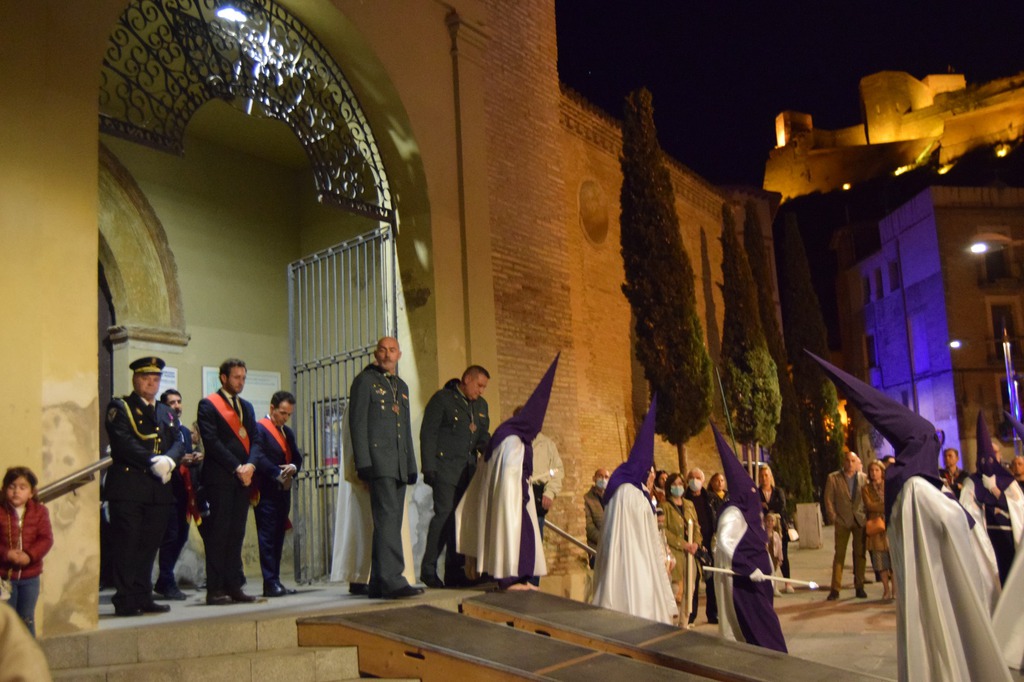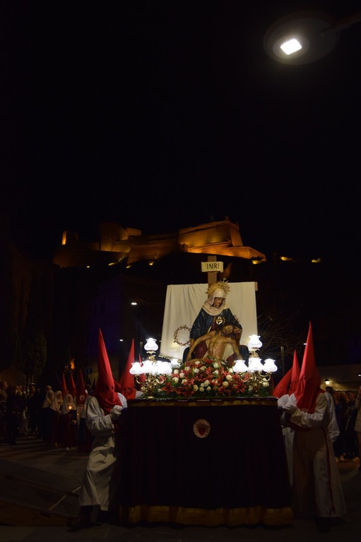 Salgamos a la calle con humildad, dispuestos a acoger, dispuestos a escuchar al que ha dejado su país jugándose la vida, al que su casa es la calle y su techo es el cielo, al compañero con el que hemos tenido alguna diferencia, al joven que se siente incomprendido o no valorado…; como la Madre acoge en sus brazos con amor a su Hijo descendido de la Cruz, como nuestra Madre de la Piedad a la que divisamos el Miércoles Santo moviéndose al compás de los tambores entre las luces de la noche, cuando sale de la iglesia de San José entre el blanco y rojo de los cofrades de la Cofradía de “Nuestra Señora de la Piedad”.