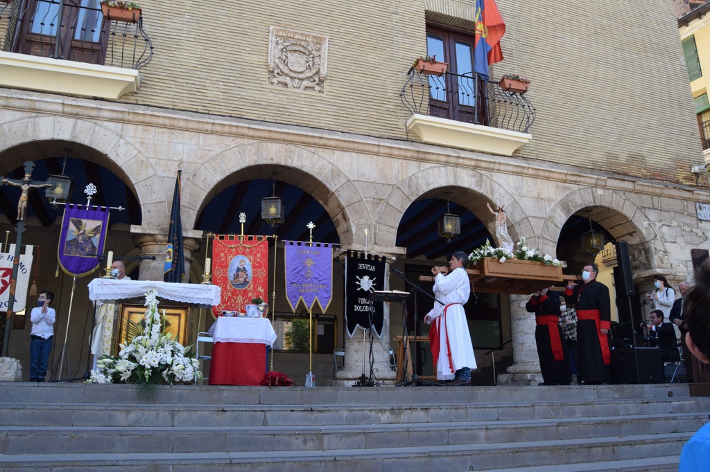En ella el presidente de la Cofradía Santo Sepulcro y miembros tanto de esta cofradía como de la Cofradía Virgen de los Dolores, acompañados del Sr.Alcalde y el Sr. Obispo, han