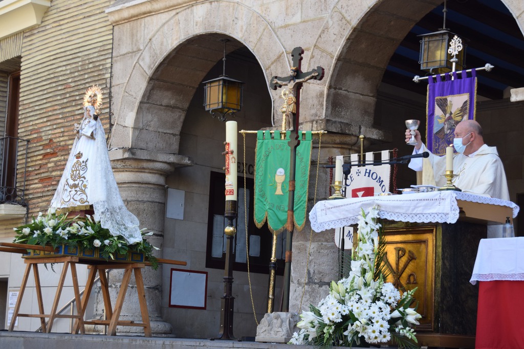 A continuación, se celebró la Eucaristía por los difuntos de nuestra ciudad presidida por el montisonense mn. José Luis Pueyo y por mn. Julián Sepúlveda, delegado diocesano de cofradías, con asistencia de numerosos cofrades. Seguidamente se inició el septenario de Ntra. Sra. de los Dolores, cuya imagen presidió el altar mayor.