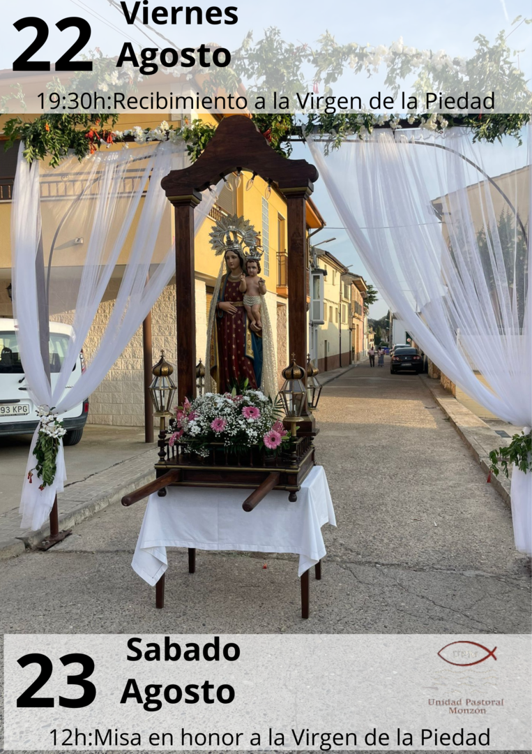 Hace varias semanas se produjo el fallecimiento de Mari Paz Bernad Obis de Almunia de San Juan. Además de ser una gran persona, era la presidenta de la Asociación Ntra. Sra. de la Piedad de Almunia de San Juan. También fue catequista durante muchos años. Era la que siempre estaba atenta a las necesidades de la Parroquia y la que organizaba junto con otras personas las celebraciones del domingo o de días especiales. En definitiva, una persona que siempre estaba cuando se le necesitaba y que, además, tenía iniciativa para organizar. Colaboraba con esta Unidad Pastoral en lo relacionado con Almunia de San Juan. D.E.P.